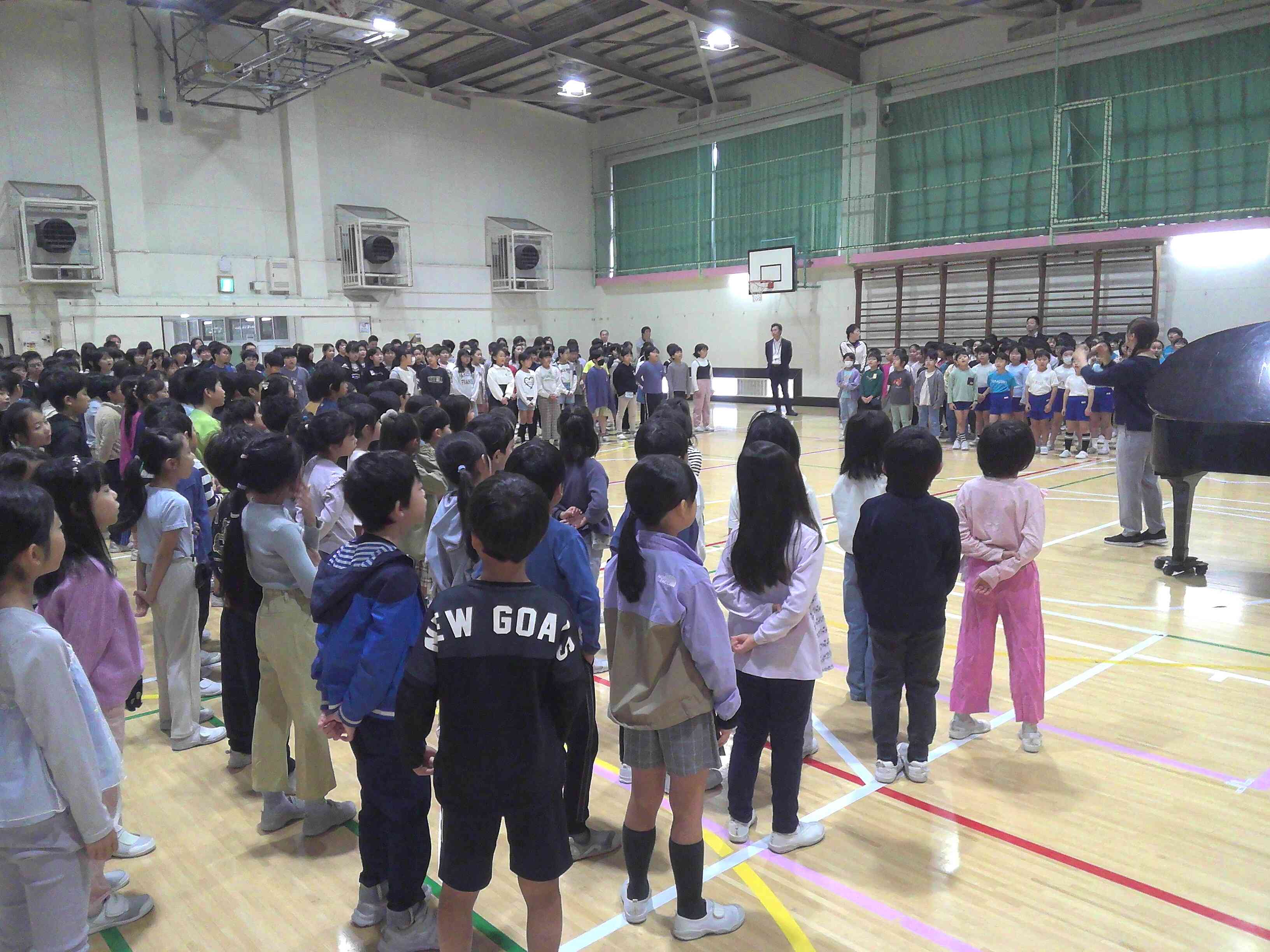 今月は「すてきな友達」を全校合唱しました。 1~3年生はソプラノ。4~6年生はアルトを担当しました。 5年生の素敵なピアノ伴奏にのって、やさしい声で歌うことができました。