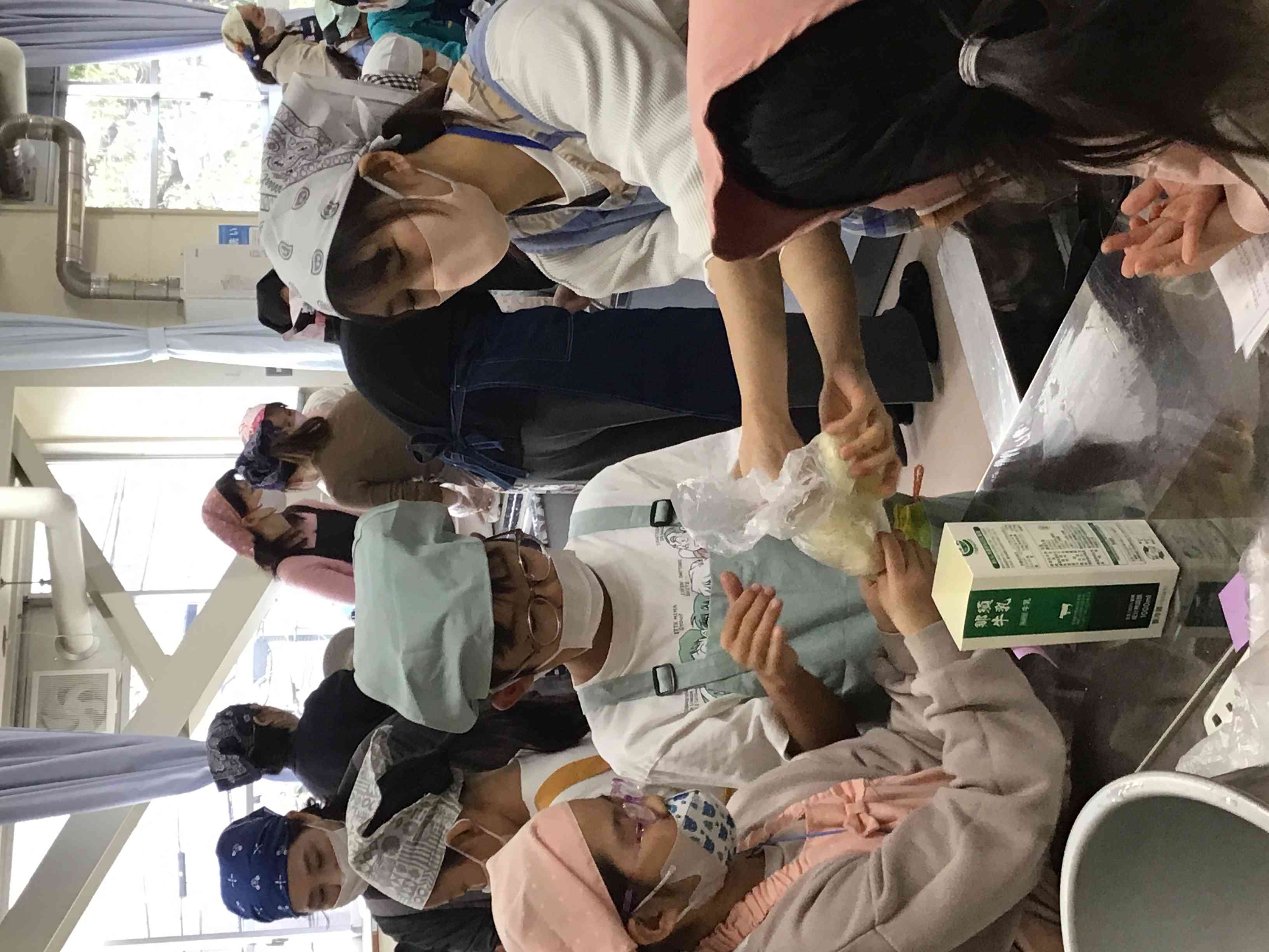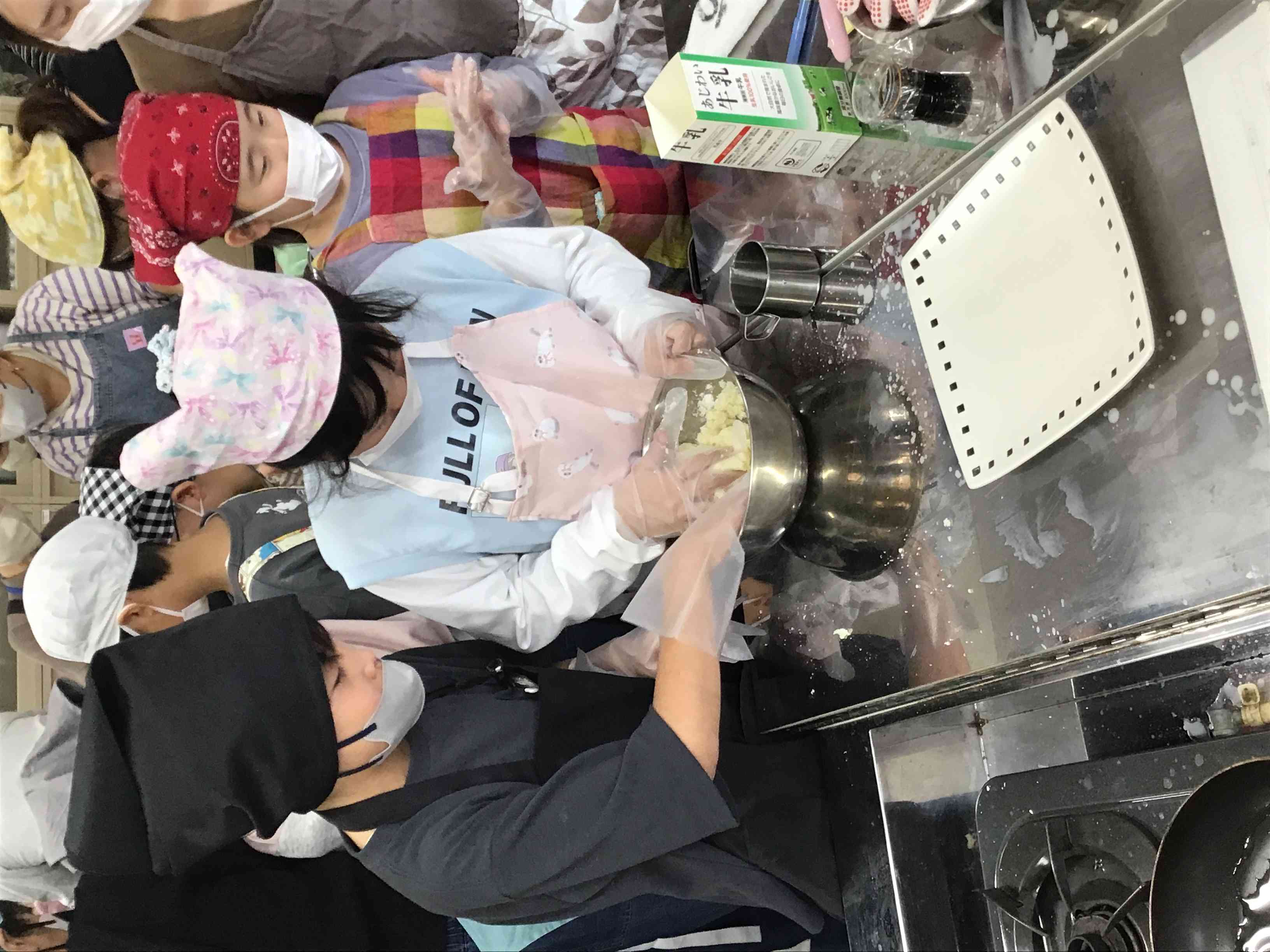 保護者の方にお手伝いいただき、とうふの特別授業を行いました。 美味しいおから団子ととうふができました。