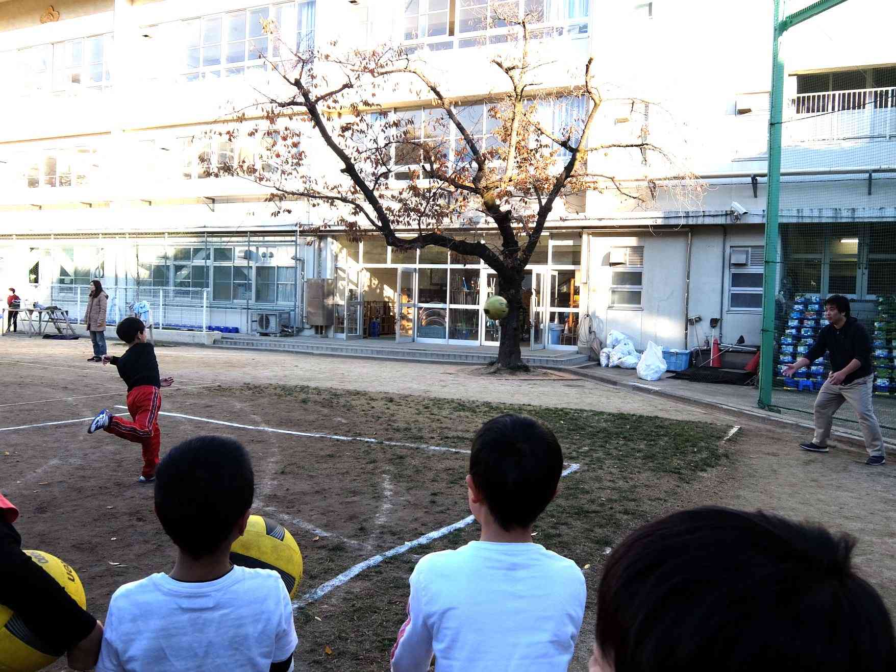 朝の7:30から始まるスーパードッジの朝練を見に行きました。 子どもたちが集まるまでに、保護者の皆さんがラインをひいたりボールを出したりと準備をして下さっています。 試合形式の練習、先生を相手に投げる練習などいろいろな事をしていました。