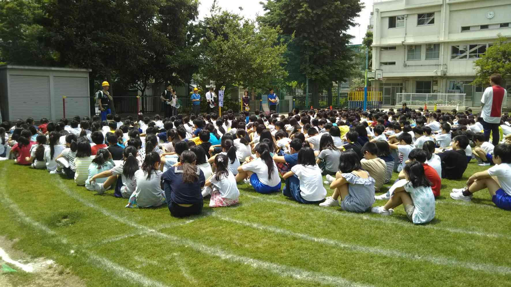 今日は、近所で火災が起こったという想定の避難訓練が行われました。防災頭巾に、口はハンカチで押さえて、整然と校庭に集合します。体育の授業中だったのか、襟元で口を覆ったり、紅白帽を利用している子もいました。 先生方のお話も、火災の際の煙の恐ろしさについてでした。ハンカチを忘れないようにと言われたり、物の燃え方を授業で学んだり…。そんな毎日の一つ一つの活動・学習が、いざという時、命にかかわる境目となるかも知れない…。 大人にとっても大事なお話でした。【添付ファイル】